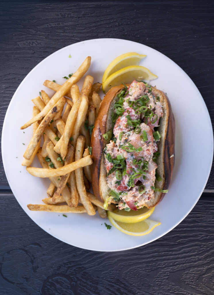 Maine lobster meat on a split top roll, with mayo, celery, tarragon, and lemon zest